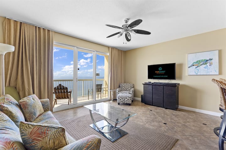 Tallest PCB building with PRIVATE balcony. Streaming 65 UHD TV plus 55 UHD in plus King bed in Master tastefully decorated with Beachyfeel fresh updates very comfortable getaway has 10 tall sliders to view Emerald Coast-pictures cant do justice. 909 Seychelles This relaxing Florida luxury unit features a wrap around Gulf front balcony with access from the living area and both bedrooms.